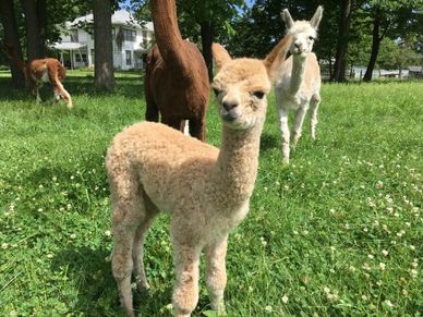 Baby alpacas and senior alpacas both tend to get cold. Babies can't regulate their body temperature until they're two weeks old, and seniors often weigh less so they get cold. Our farm has plenty of shelter so our alpacas stay warm.
